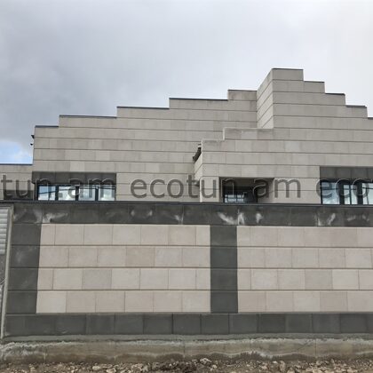 էկոբլոկների օգտագործմամբ: Էկոբլոկները թեթևացնում են արտաքին պատերի քաշը 4 անգամ, դրանով իսկ թեթևացնելով մոնոլիտ կարկասների և հիմքերի բեռնվածությունը: Նախագծերը միօրինակ (ստանդարտ) չեն, տեսքն ու դիզայնը կարող է որոշվել գնորդի ցանկությամբ: