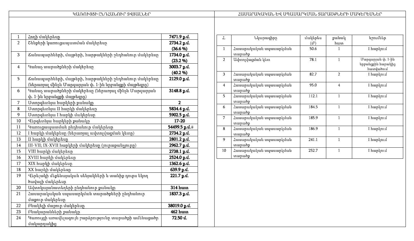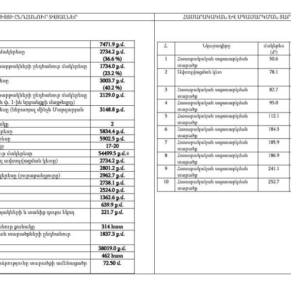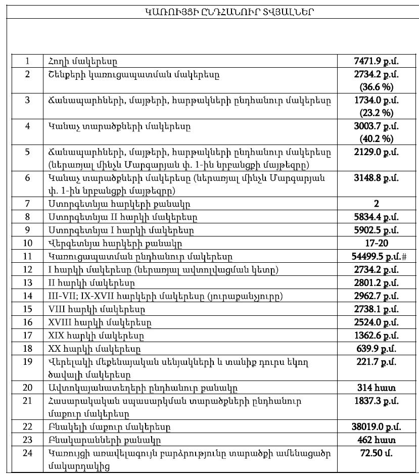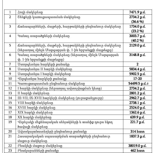 | Վերգետնյա շին-մակերես/քմ | 54500 |