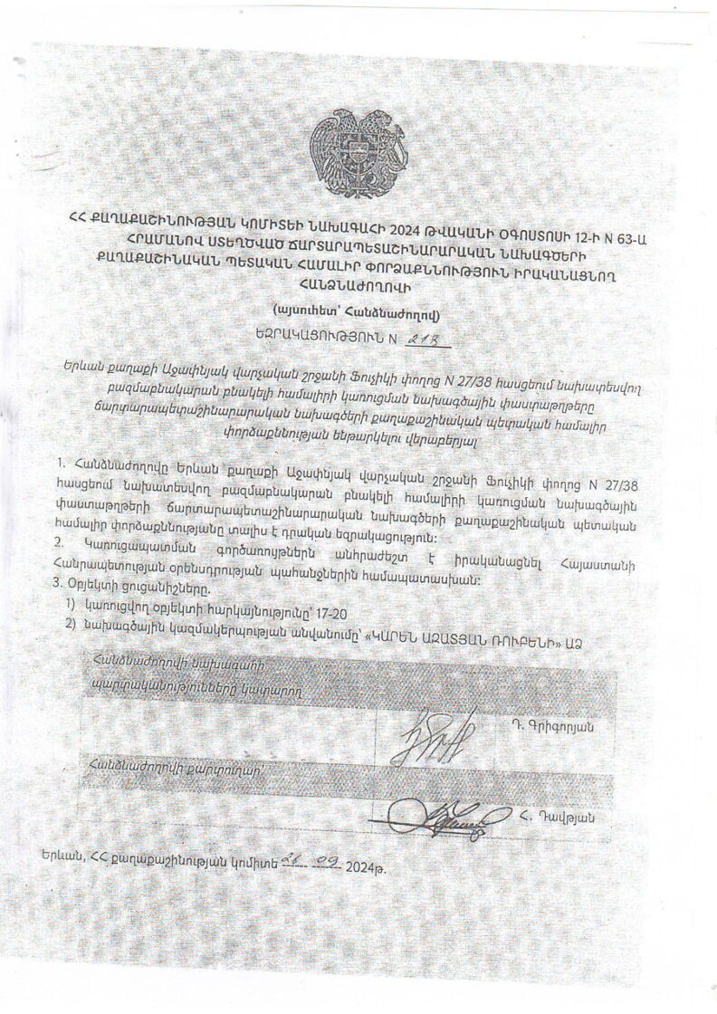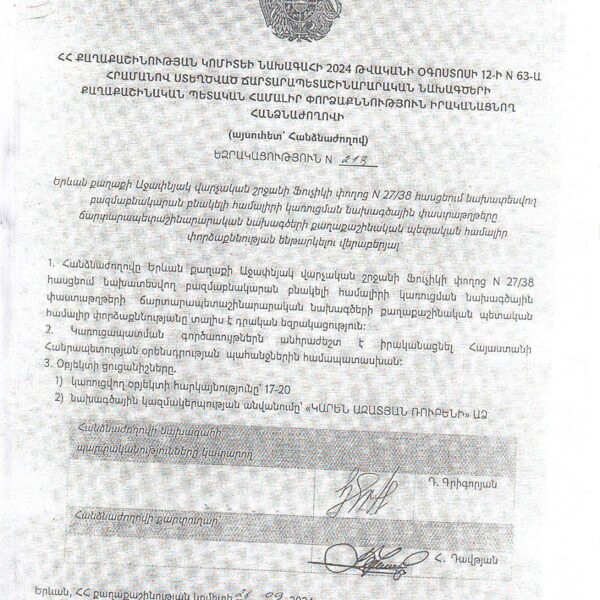 | Աջափնյակ, Ֆուչիկի 27/38 | Հող-7802քմ |